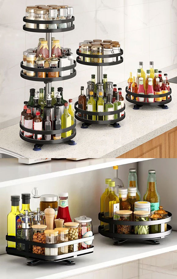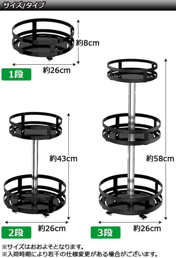 スパイスラック 3段 ブラック ステンレス製 ラウンド型 360度回転式で取り出しが便利!水洗い可能でお手入れも簡単 高さ調節も可能 收藏