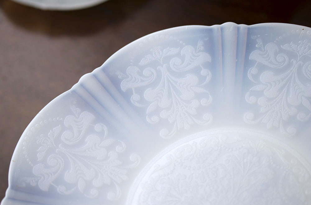 1930年代 マクベスエバンス アメリカンスウィートハート ペタルウェア プレート 皿 ミルクガラス ケーキプレート プラッター アンティーク 收藏