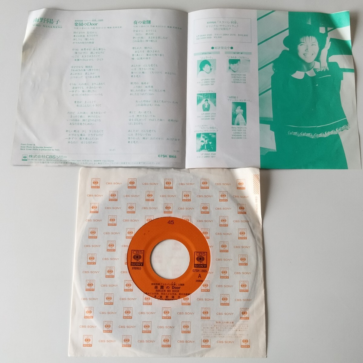 【7inch】南野陽子/楽園のDOOR/スケバン刑事 主題歌(07SH1865)夜の東側/1987年EP/ナンノ/昭和 アイドル/レコード