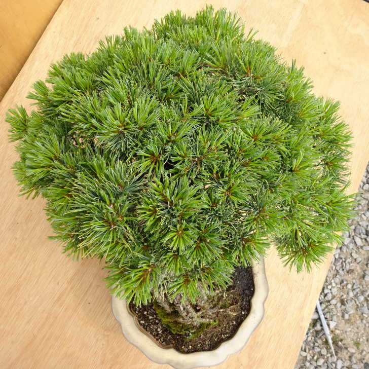 | ■植物ですので撮影時期や季節によって剪定などの手入れにより写真から変化がございます。撮影日をご確認のうえ、ご注文ください。 【五葉松盆栽】 日本固有のマツであり、平安時代から観賞用として神社仏閣などの庭園に植栽されています。銀色がかった葉が美しく成長が遅い上、木質が柔軟で枝を曲げやすいため、盆栽に使われることも多い。樹皮は暗灰色で、老木になると裂片がうろこ状に剥がれ落ちます。 |
