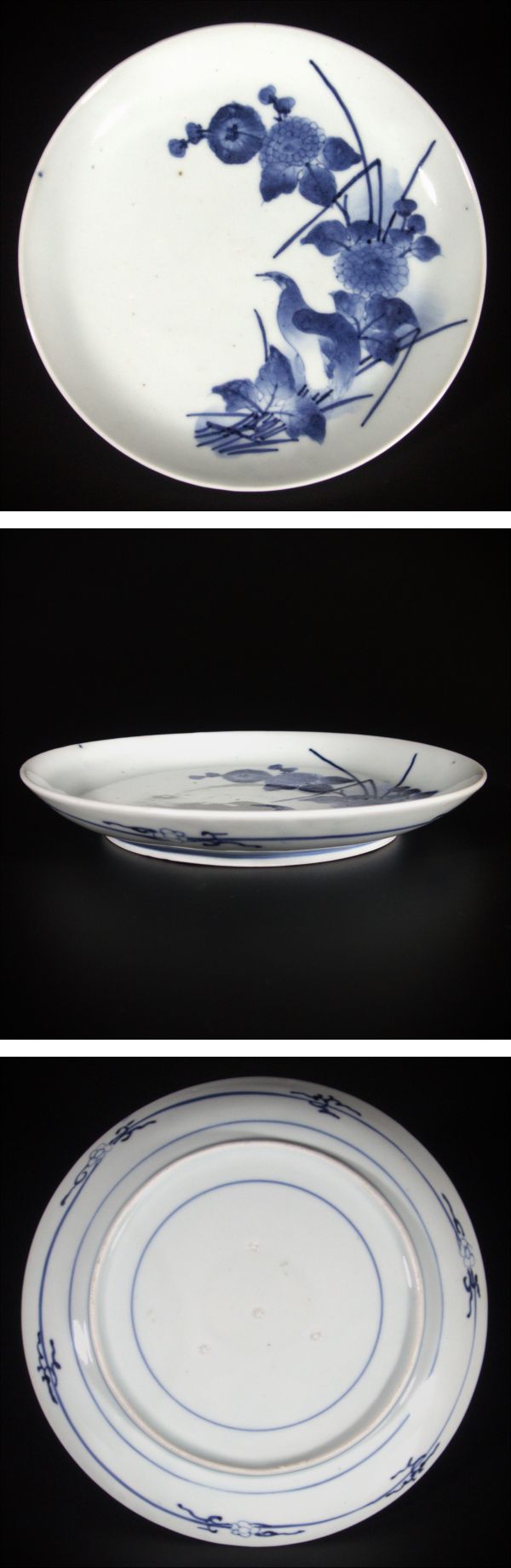 藍柿右衛門 花鳥文 中皿 江戸中期 1690年前後 柿右衛門 古伊万里 染付 飾皿 インテリア (本物保証) 收藏