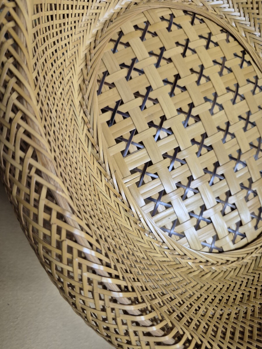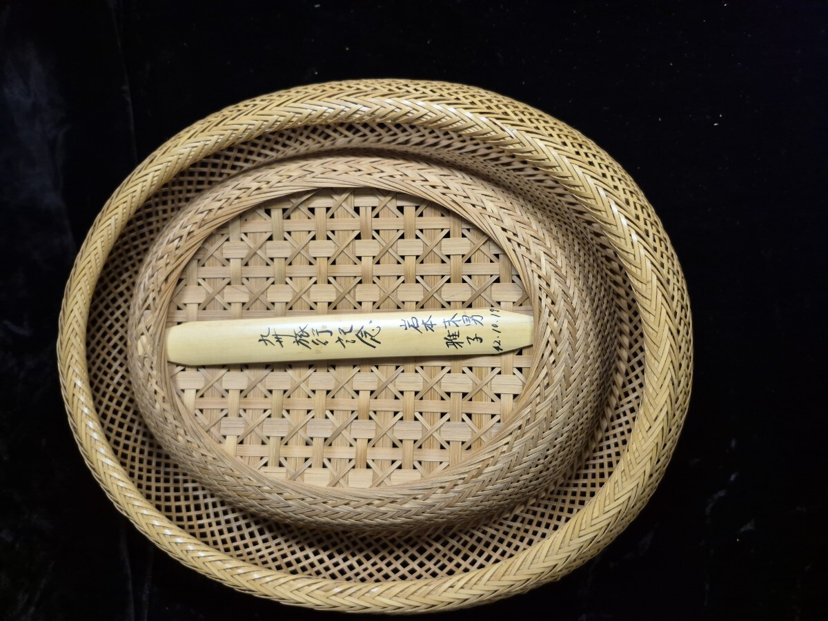 竹製の盛篭です。手作りで丁寧に作ったもので、見た目にはとてもきれいですが近くで見ると、部分的に細かく折れがあるところもございます(全く際立ちません)。中古品としてご認識いただき、ノークレーム・ノーリターンでお願い致します。