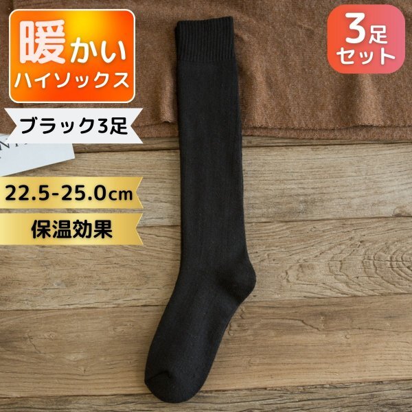 ハイソックス 靴下 レディース 3足 セット 靴下 暖かい 保温効果 綿 厚手 黒 ブラック 冷えとり ルームソックス パイル 收藏