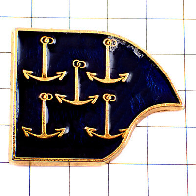 ピンバッジ・イカリ錨5つボート船ブルー紺色◆フランス限定ピンズ◆レアなヴィンテージものピンバッチ 收藏