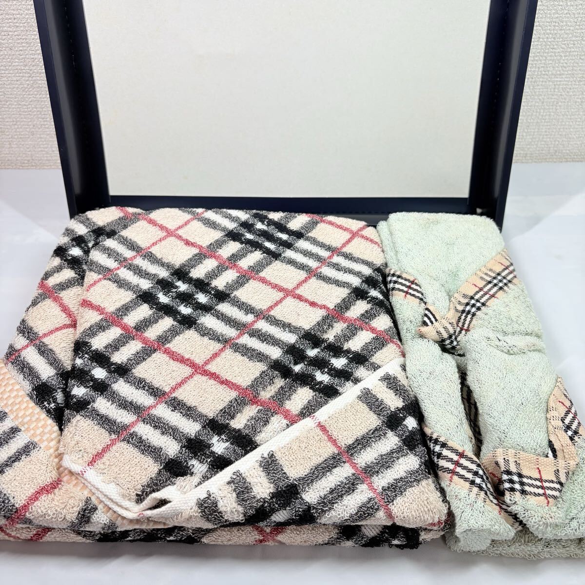 美品未使用 BURBERRY LONDON バーバリーロンドン バスタオル ウォッシュタオル2枚 ノバチェック ベージュ カーキ 西川産業 收藏