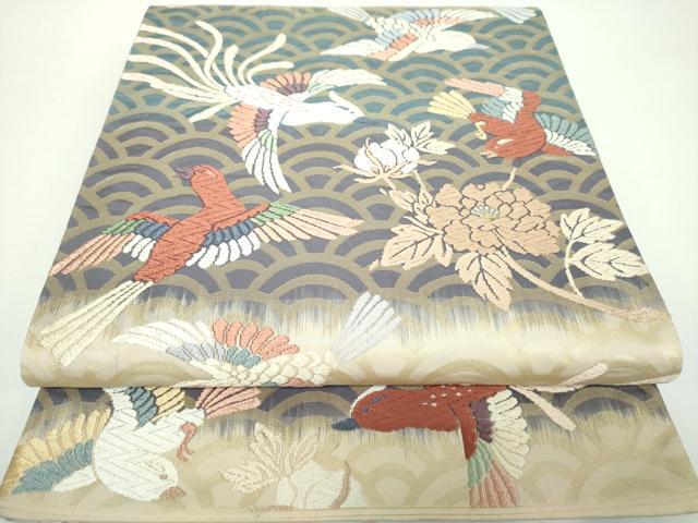 平和屋着物▼六通柄袋帯 唐織 花鳥文 金糸 正絹 逸品 DAAX4188ps