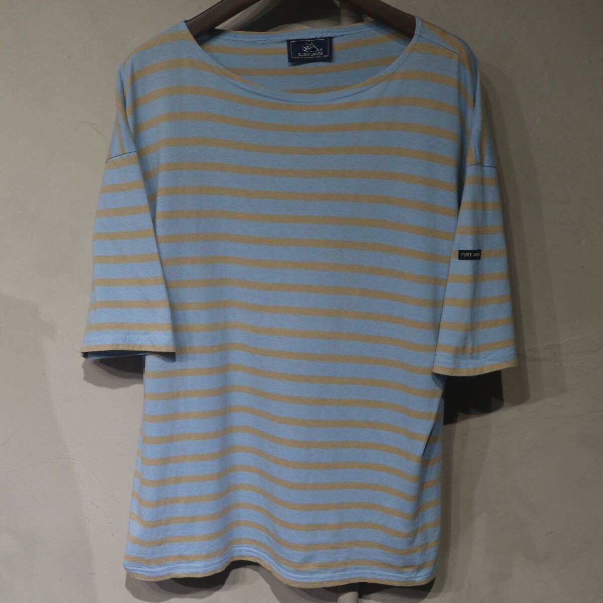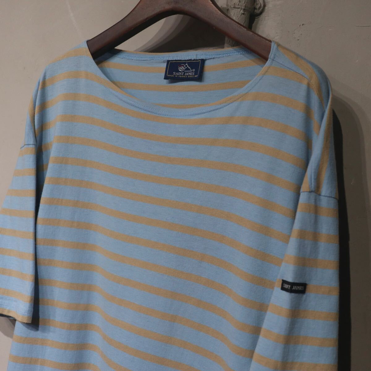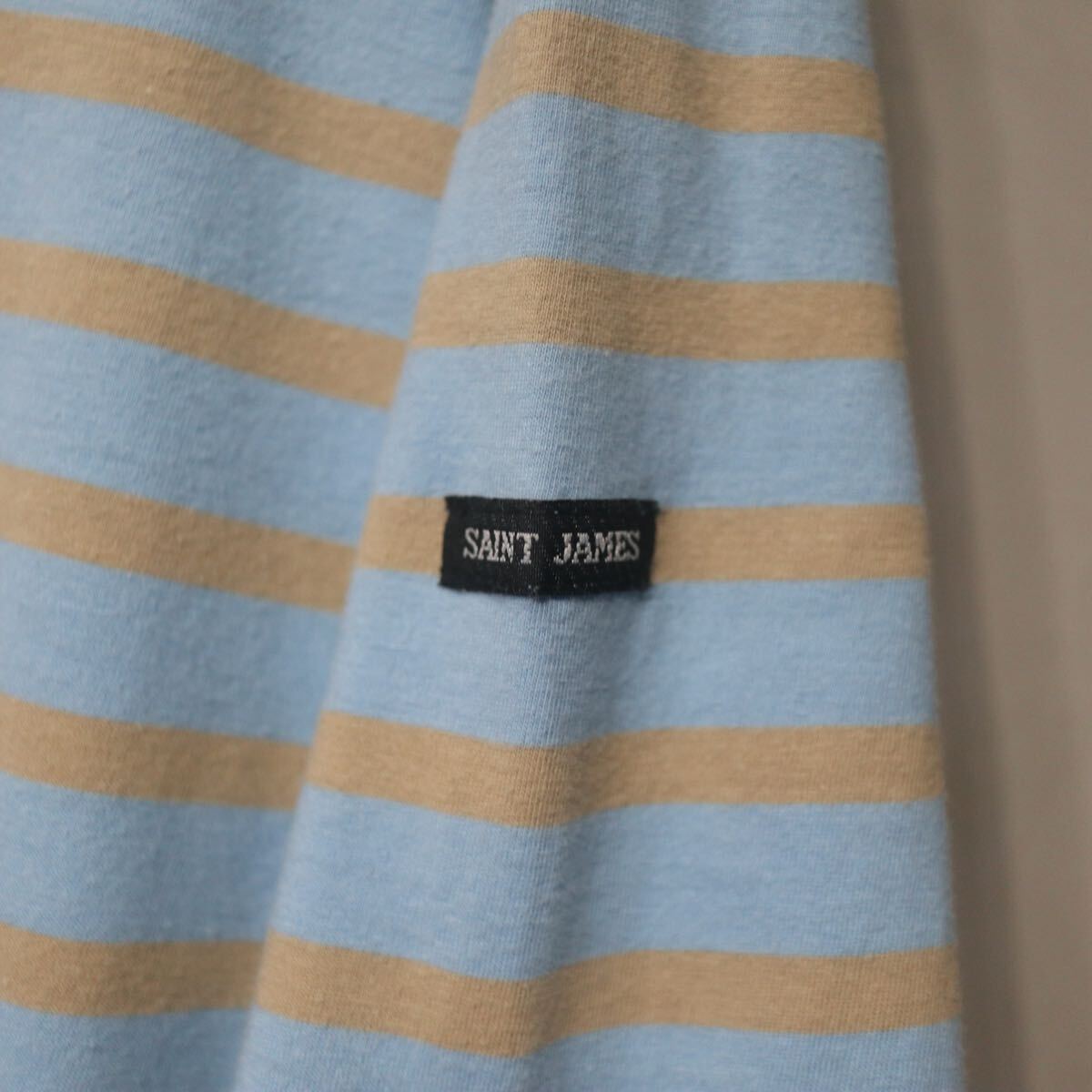 【即決】80s saint james セントジェームス ボーダー Tシャツ カットソー 半袖 水色 ブルー ベージュ フランス 古着 收藏