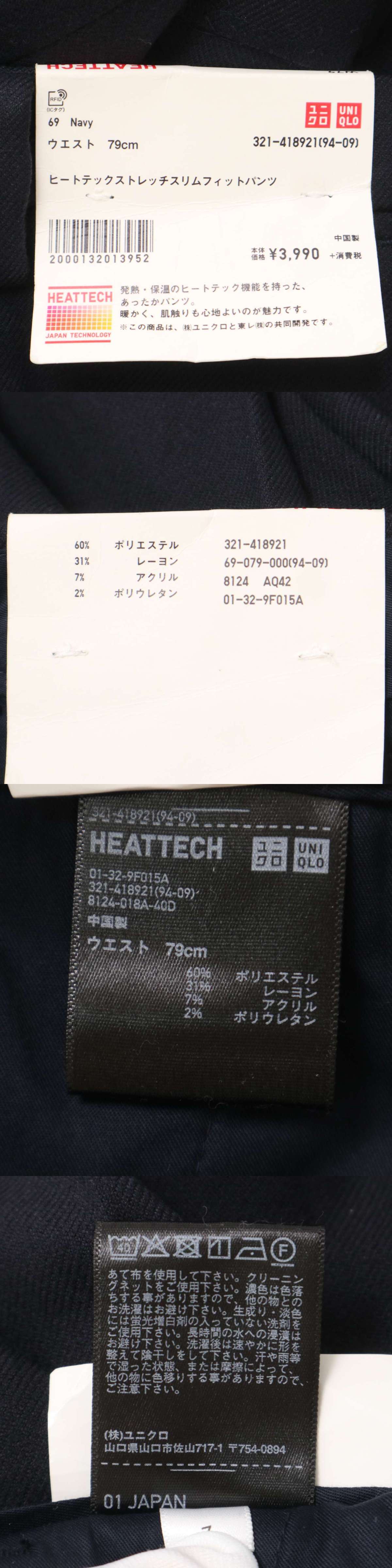【新品 未使用】 UNIQLO ユニクロ 秋冬 ヒートテック★ ストレッチ スリムフィット スラックス パンツ Sz.79cm メンズ 紺 收藏