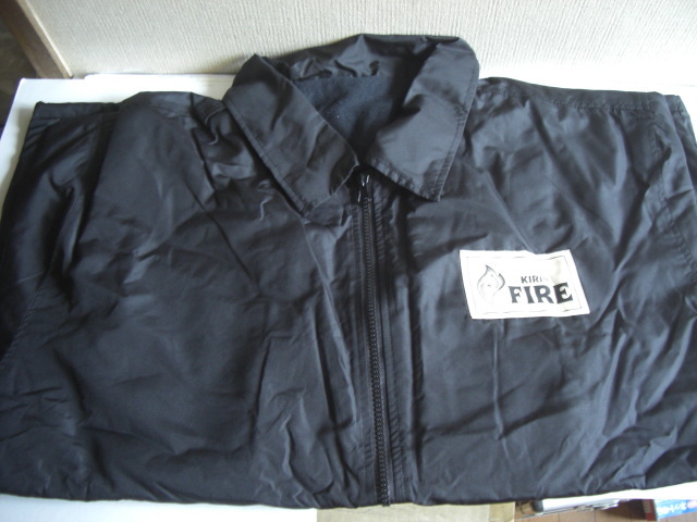 ポリエステル100%のジップアップジャケット、前面に「FIRE」ロゴ付き。 - 色: 黒 - 素材: ポリエステル 100% - サイズ: F - デザイン: 前面に「FIRE」のロゴ付き - スタイル: ジップアップジャケット 平置き寸法 肩幅/約53cm 袖丈/約59cm 身幅/約60cm 着丈/約73cm 裏地は薄手のフリース素材で秋物です。