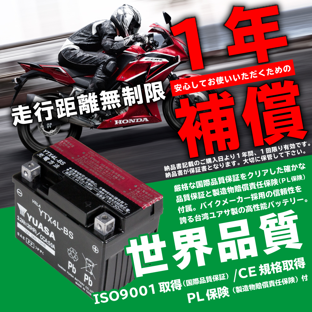 台湾ユアサ YTX5L-BS 液入充電済 バッテリー YUASA 1年間保証付 新品 バイクパーツセンター 收藏