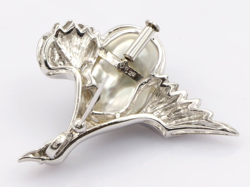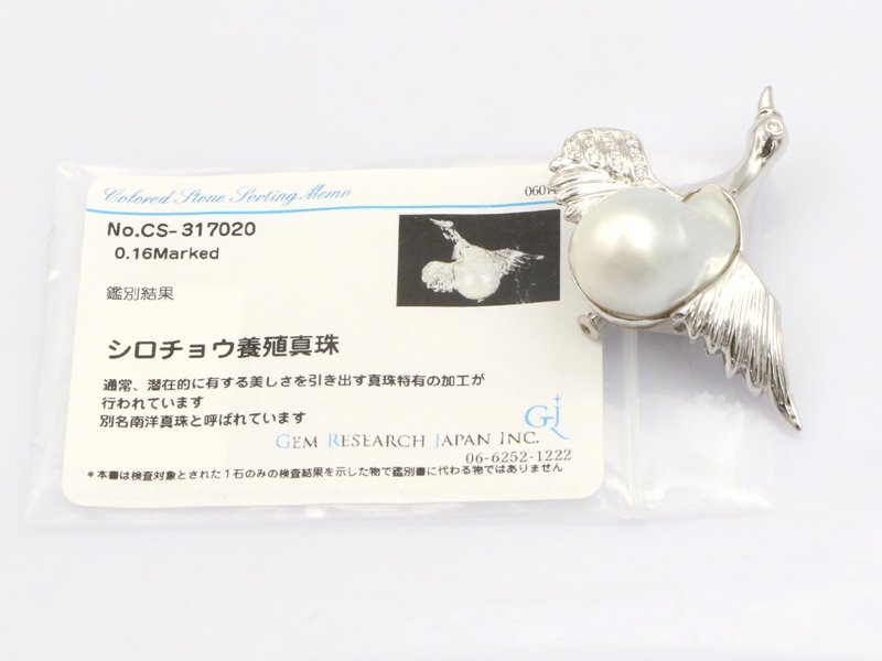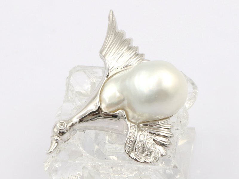 【 プラチナ PT900 】 ペントップ ブローチ 南洋パール ダイヤ 0.16ct 21.3g ハクチョウ レディース ソーディング ☆新着 01544-0 收藏