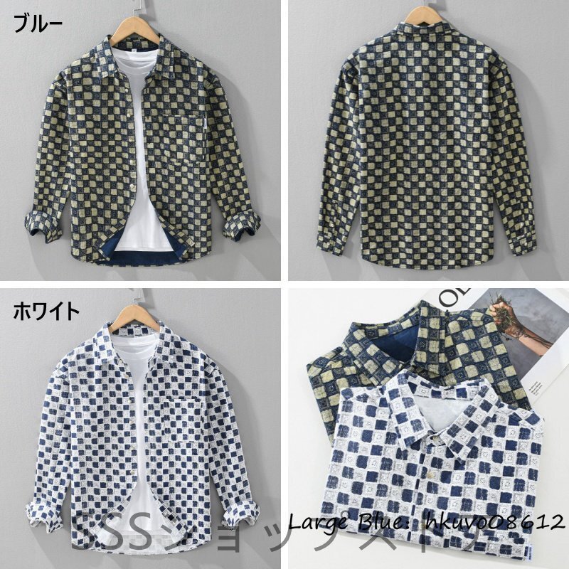 極美品*デニムシャツ メンズ チェック柄 長袖シャツ デニムジャケット ヴィンテージ 春夏秋 通勤 紳士用 アウター トップス ブルー XL 收藏