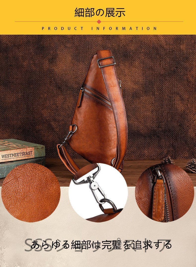 美品★ レトロ風 左右肩掛け替え 本革 メンズ ボディバッグ ヌメ革 牛革 レザー ワンショルダーバッグ おしゃれ 自転車 鞄 收藏