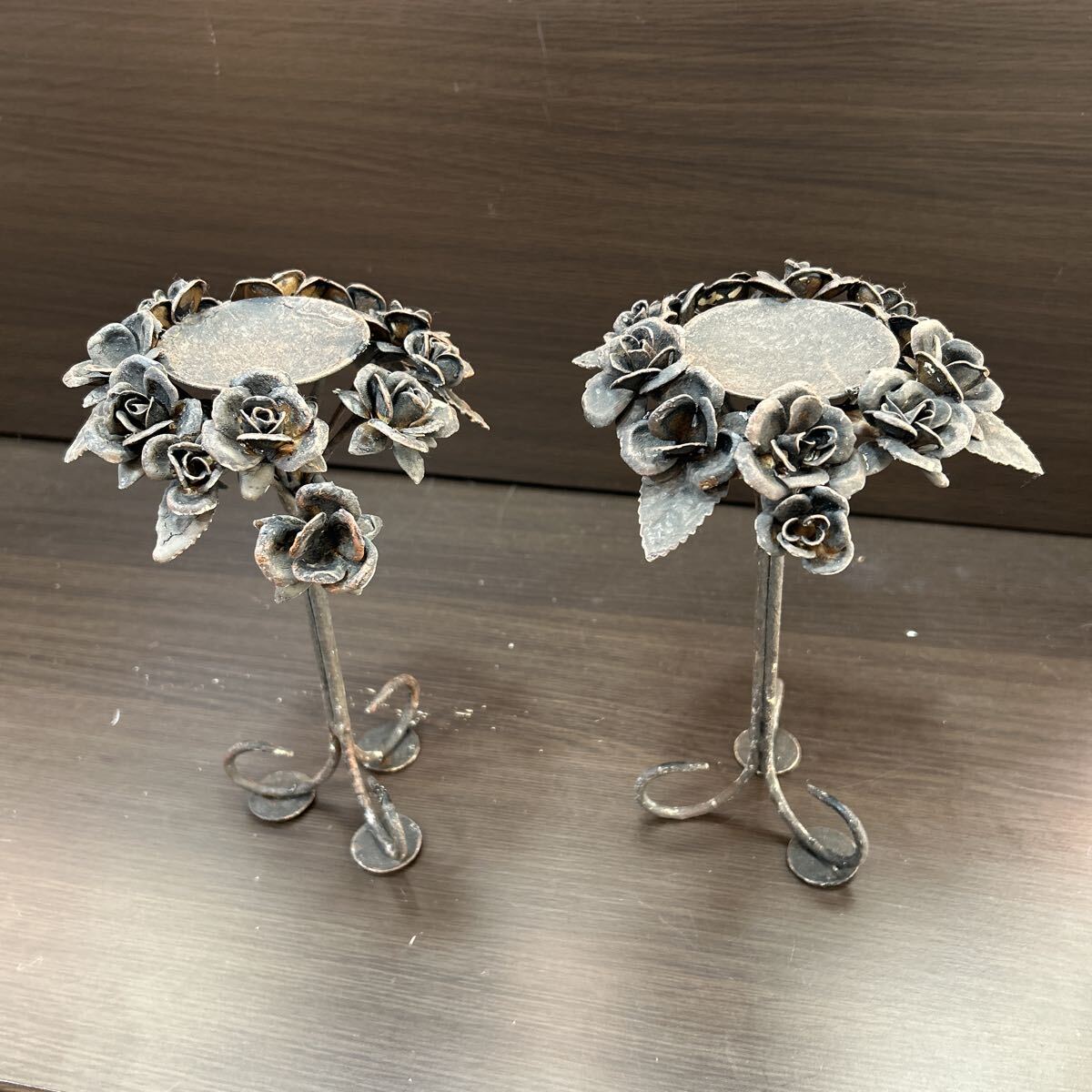 ヴィンテージ 小物置 キャンドルスタンド 2個セットバラ? 卓上オブジェ アイアン インテリア 訳ありとった 收藏