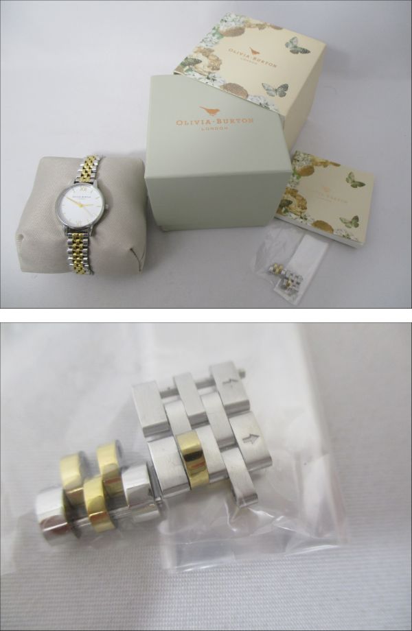稼働品 OLIVIA BUTON オリビアバートン クオーツ レディース腕時計 OB-049 予備コマ/ケース付き 【8557】 收藏