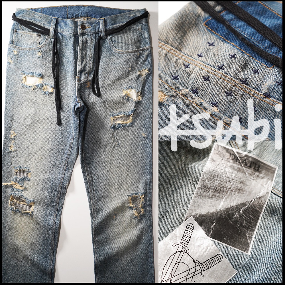 新品 /希少アーカイブ【 KSUBI スビ 】廃番モデル/GEE GEE /MATT BASH/ ヴィンテージ加工デニムパンツ 28/80-82CM相当 收藏