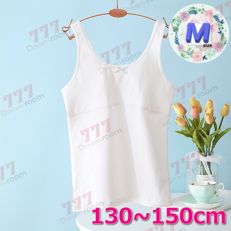 1スタ☆kids 通気性◎ タンクトップ 【M】ホワイト 130-150cm 夏 スポーツブラ 子供 ファーストブラジャーインナー K-405-07