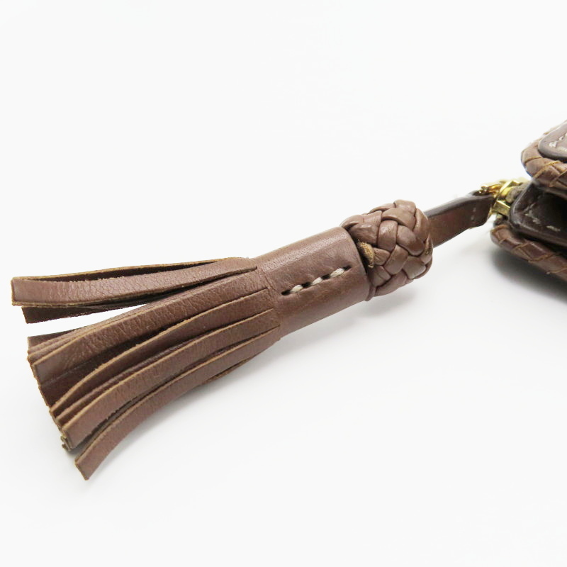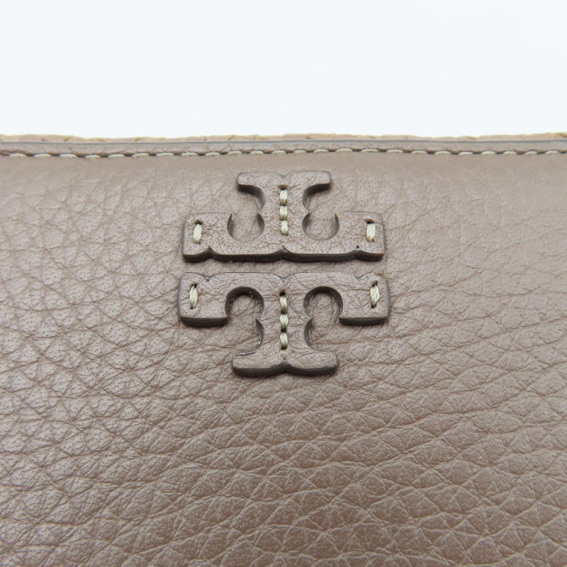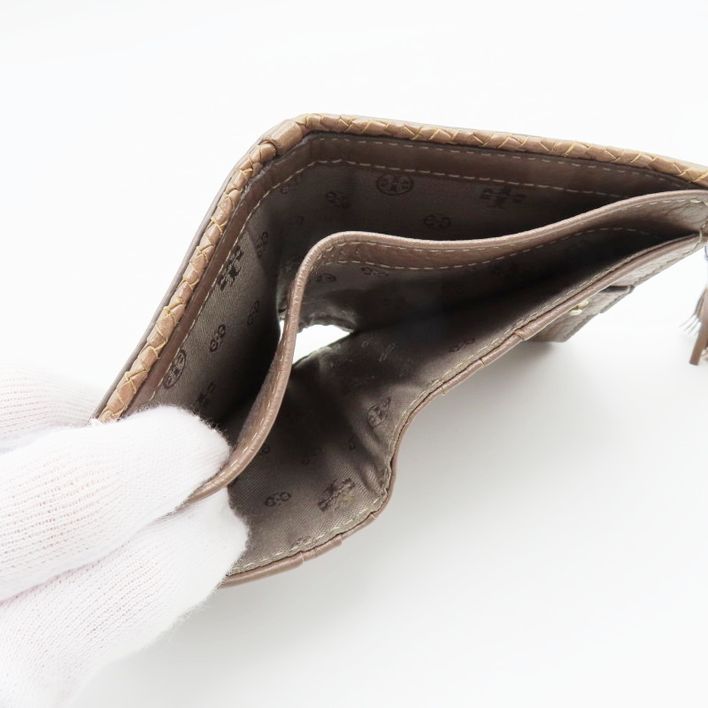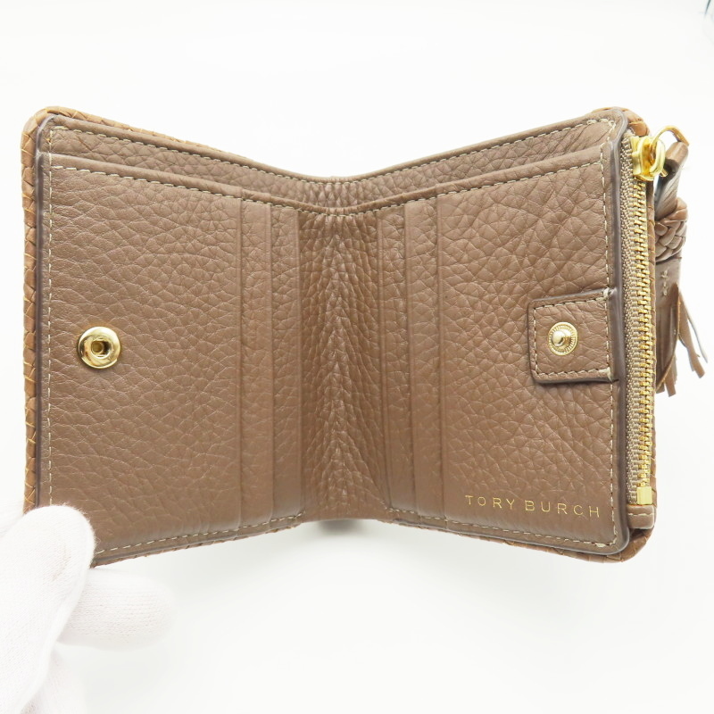 K04-k082 TORY BURCH トリーバーチ ロゴ レザ― フリンジ 二つ折りコンパクト財布 チャ 收藏