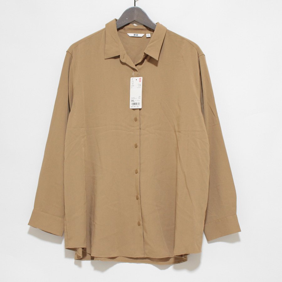 未使用タグ付 1990円 UNIQLO ユニクロ ゆったり レーヨン混 長袖シャツ 3XL 收藏