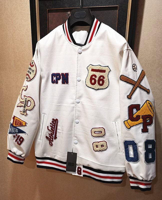 最上級※定価13万◆イタリア・ミラノ発*BOLINI*高級PUラムスキン*重厚・防寒※ 可愛いワッペン ・スタジアムジャンパー48/L白 收藏