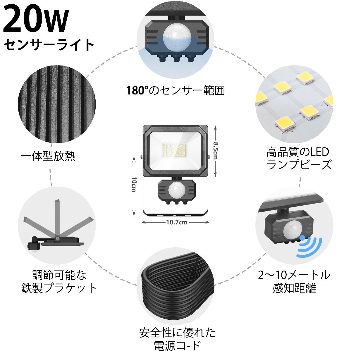 即納!1台 センサーライト 20W LED投光器 屋外 人感センサー コンセント式 作業灯 防犯ライト IP65 LED 昼光色 6500K 2200LM 100V 1年保証 收藏