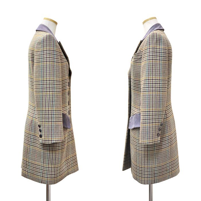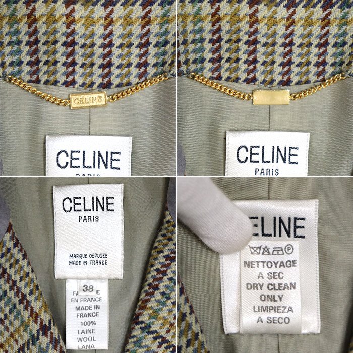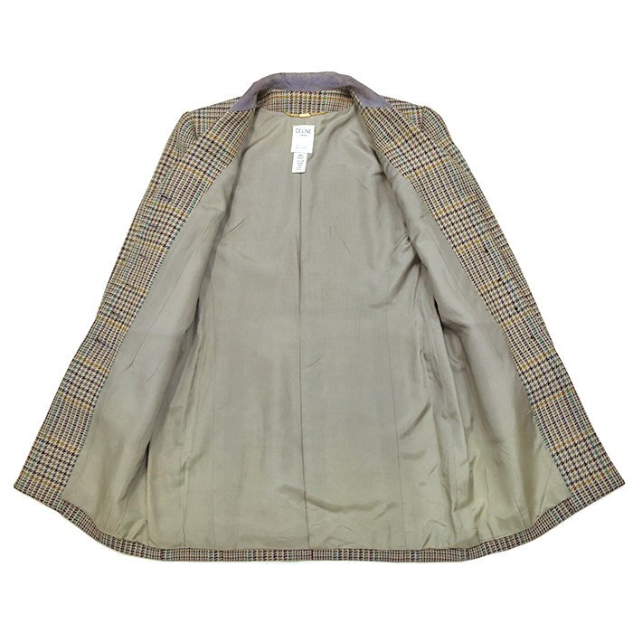 セリーヌ(CELINE) チェスターコート サイズ38(約M~Lサイズ) チェック 格子柄 ウール100% マルチカラー デカボタン アウター 衣類 ハンガー 收藏