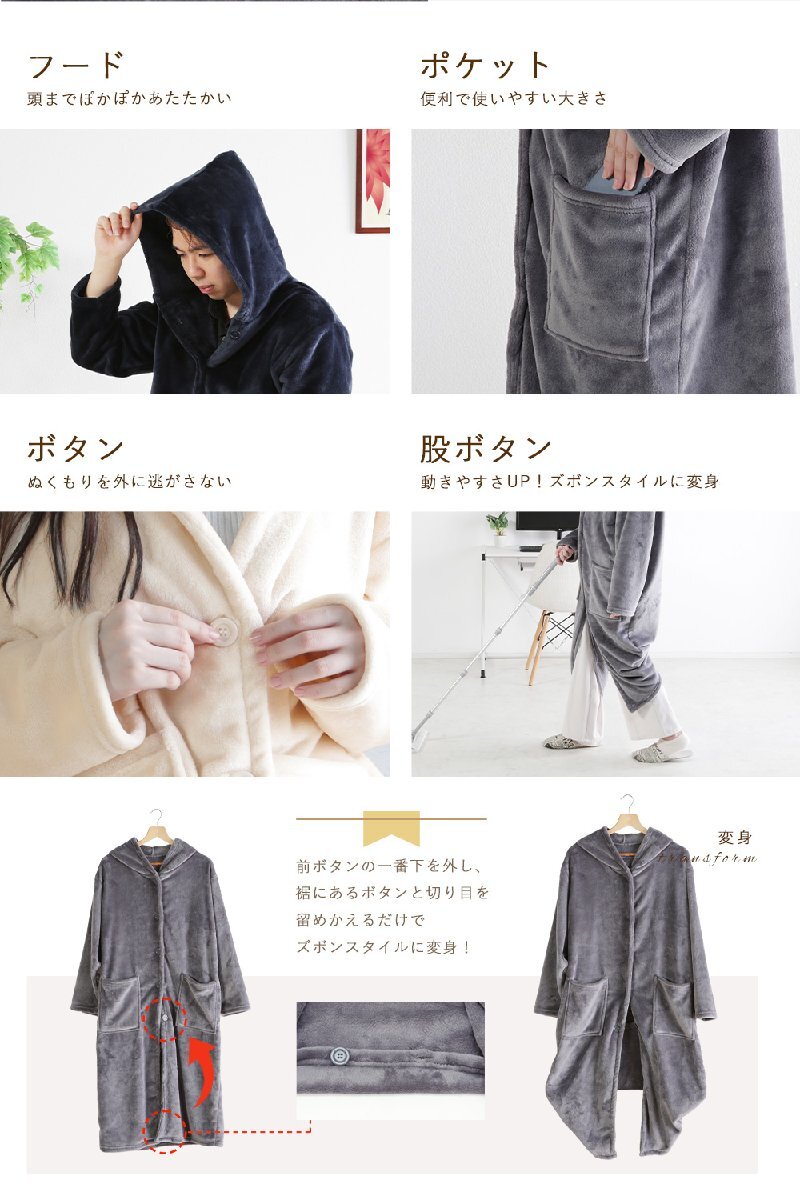 着る毛布 ルームウェア フリーサイズ 男女兼用 120cm あったか 冬 マイクロファイバー ガウン 静電気防止 ポケット 洗える グレー 收藏