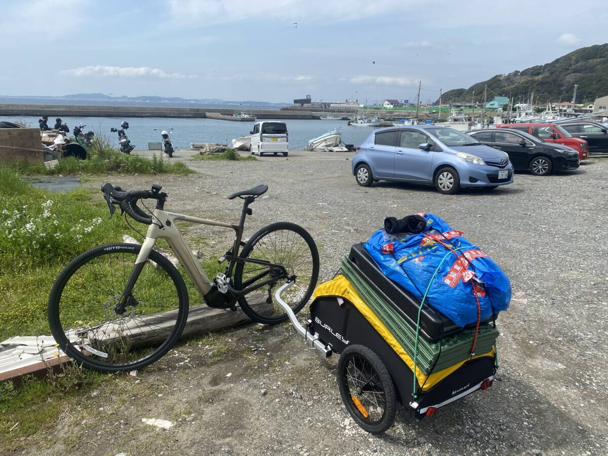 (2025年 10月 24日 2時 32分 追加)10枚目の写真は購入した年に新宿→久里浜フェリー経由で館山までこの自転車で旅行した時の写真です(※このサイクルトレーラーや詰んでる荷物は出品物ではありません、あくまで使用例を示す為の画像です)。サイクルトレーラーに詰んだのは