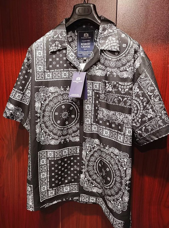 最高級※定価4万◆イタリア・ローマ発*ROBERT CAVANI/ロベルトカバーニ*高級シルク・イタリアン*アロハシャツ・50/XL・黒 收藏