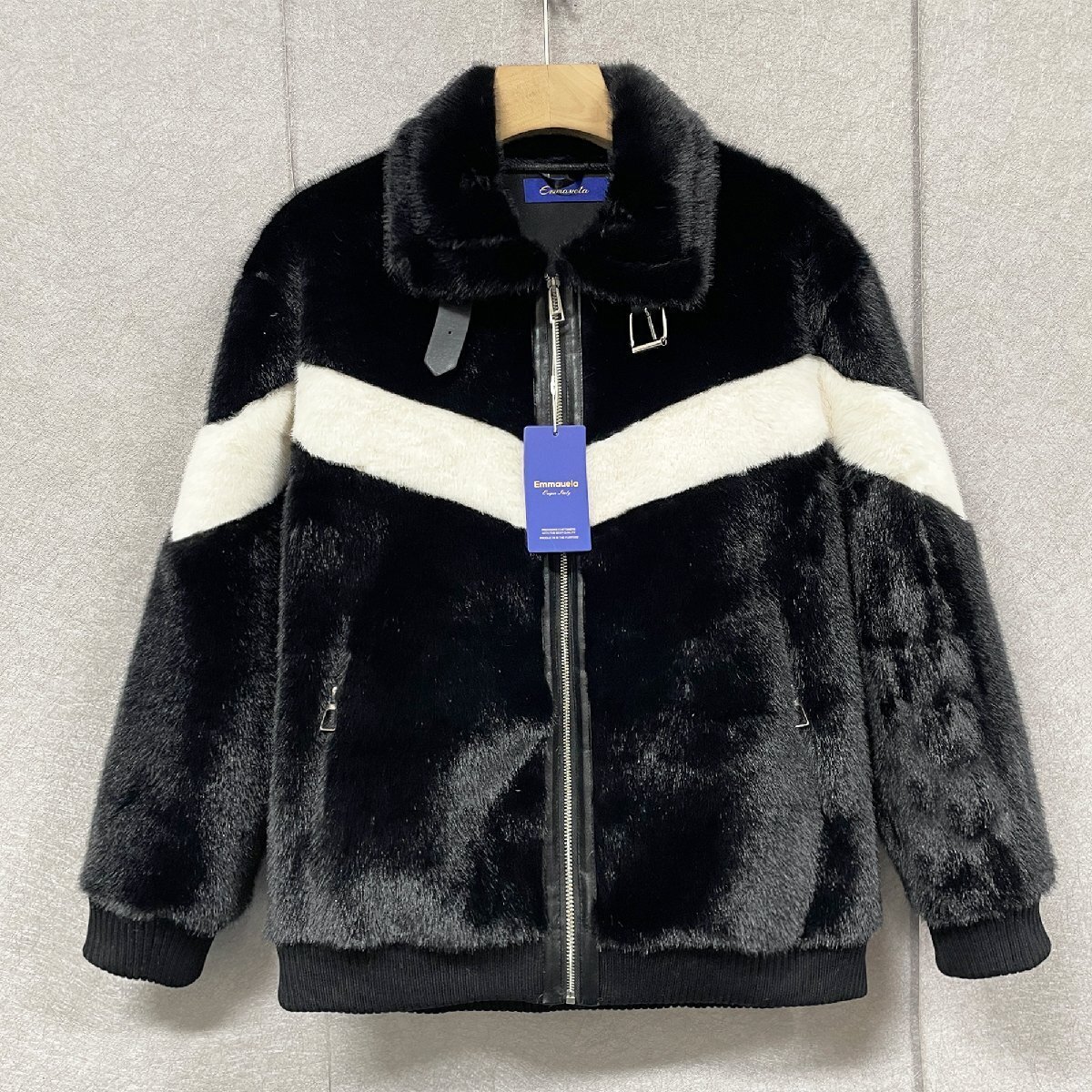 高級・ファーコート 定価10万◆Emmauela・イタリア・ミラノ発◆ミンク混 柔らか 防寒 切替 光沢感 毛皮コート ジャケット アウター L/48 收藏