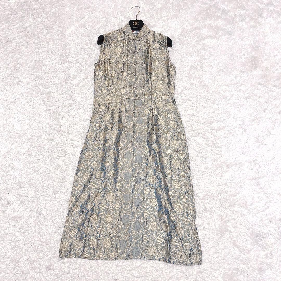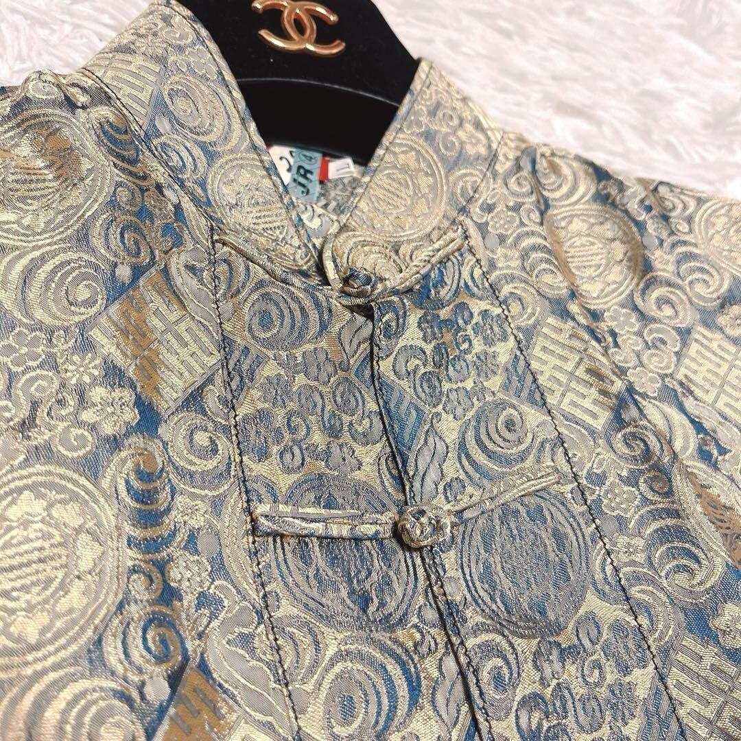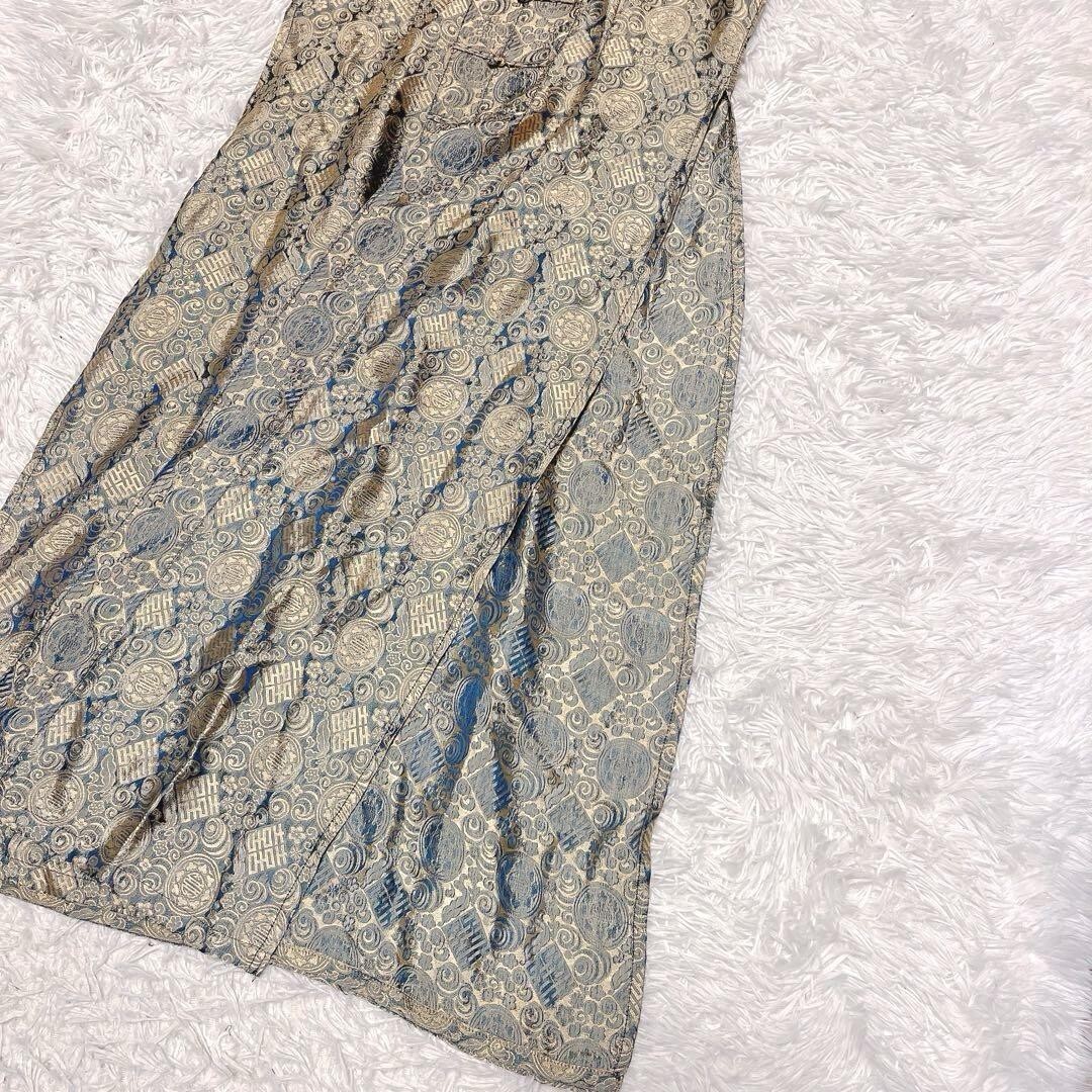 高級 シルク ベトナム アオザイ セットアップ チャイナ服 総柄 チャイナ 上下 收藏