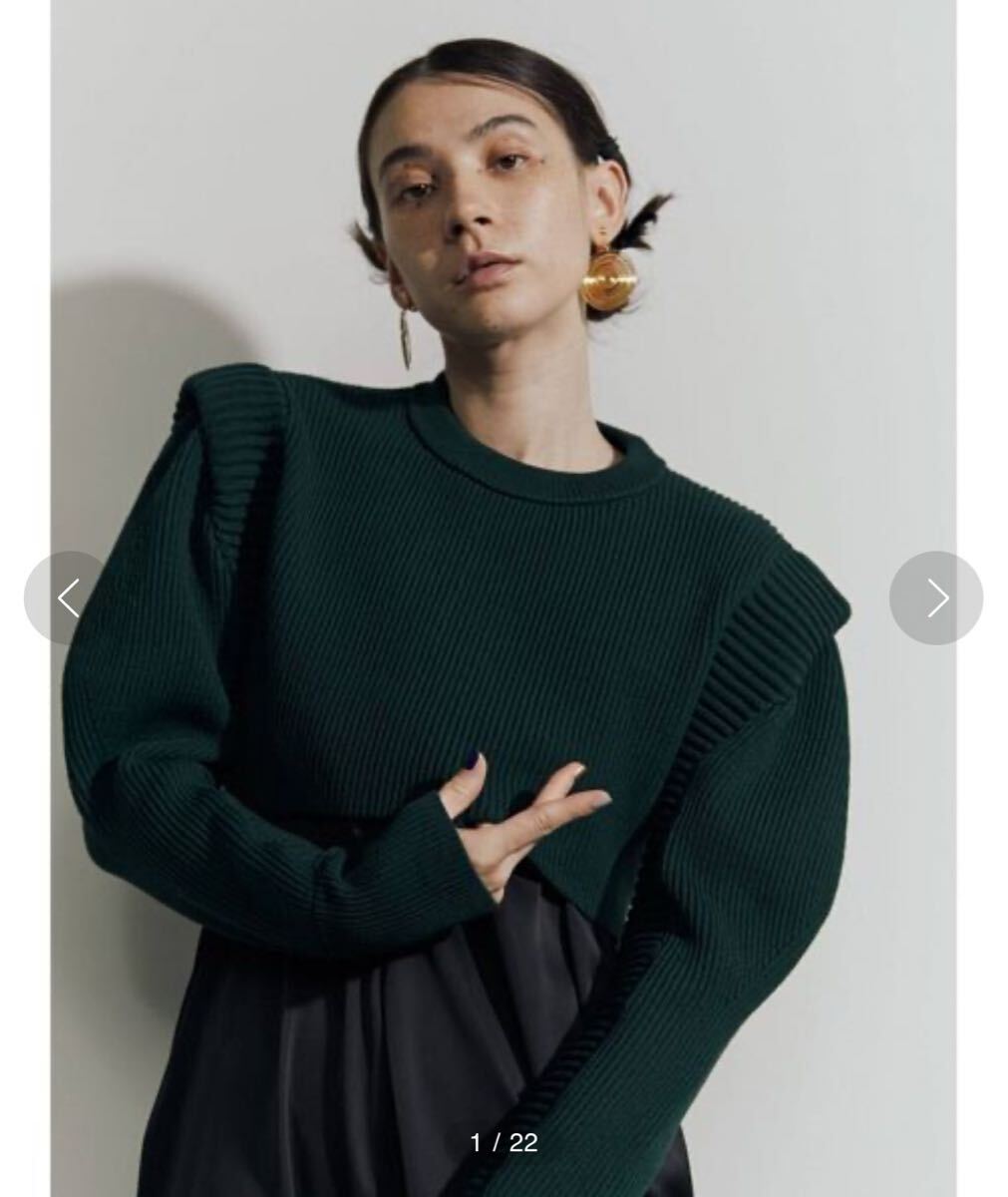 立体的な編地とタックで表現したパワーショルダーデザインがポイントのショートニットトップス。伸縮性がありしっかりと立体的な形状を保ちながらも柔らかい着心地のニット素材になっています。ショート丈なのでシャツやワンピースなどにレイヤードするスタイリングがオススメです。