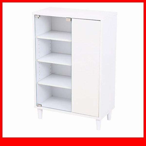 キャビネット★新品/Adatto ガラス&扉/本棚 食器棚 ディスプレイラック 多目的収納 可動棚/人気の白家具 ホワイト/a3 收藏