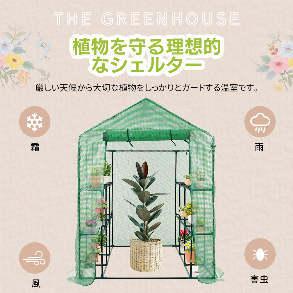 ビニール温室 大型 W142cm×D213cm×H190cm 温室 左右2段 ベランダ 家庭用 ビニールハウス 家庭菜園 ガーデンハウス フラワーハウス 收藏