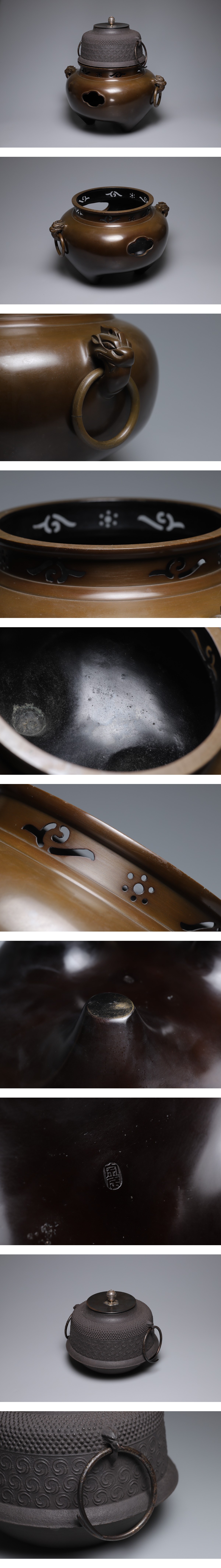 茶釜 畠春斎 一ノ瀬宗 唐銅 鬼面風炉 共箱 煎茶道具 風炉釜/茶道具/古美術品/骨董品 L06757 收藏