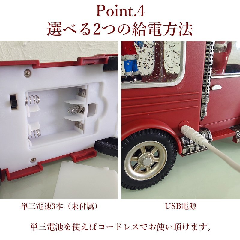 ![]() サンタトラックが運ぶ、夢ときらめきのクリスマス たくさんのプレゼントと笑顔を乗せて、サンタクロースのトラックが街を走り抜ける――。 そんなワクワクする瞬間をそのまま閉じ込めた、レトロデザインのスノードームライトです。 赤いトラックの運転席にはサンタと仲間たち。 後部のドームには、ツリーを囲んでダンスを楽しむこどもたちの姿が描かれています。 スイッチを入れると雪が舞い、LEDライトが温かく輝き、まるでクリスマス映画のワンシーンのような幻想的な雰囲気を演出します。 玄関やリビング、ツリーの足元に飾るだけで、お部屋が一瞬でホリデームードに包まれます。 大人も子どもも心ときめく、クリスマス限定の特別なインテリアです。 給電方法は2つ、付属のUSBコードで使用する他、 単三電池3本でコードレスとしての使用も可能! 精巧に作られている為、ライトを点灯させずに 単体でオブジェとして使用しても存在感抜群です! ギフトなどにもおすすめです! ●動作パターン● ・未点灯 ・LED点灯(音楽なし) ・LED点灯(音楽あり) ※乾電池、USB出力用のアダプターは付属しておりません。 点灯時の様子は動画でご覧くださいませ。 動画はこちら ↓↓↓↓↓↓↓↓↓↓↓↓↓ こちらをクリック! 【商品詳細】 カラー:レッド サイズ(約): 高さ20.5cm×幅28cm×奥行き9.5cm コード長さ(約):98cm 重量(約):1.1kg 素材:プラスチック 【給電方法】 単三電池×3/USBコード |