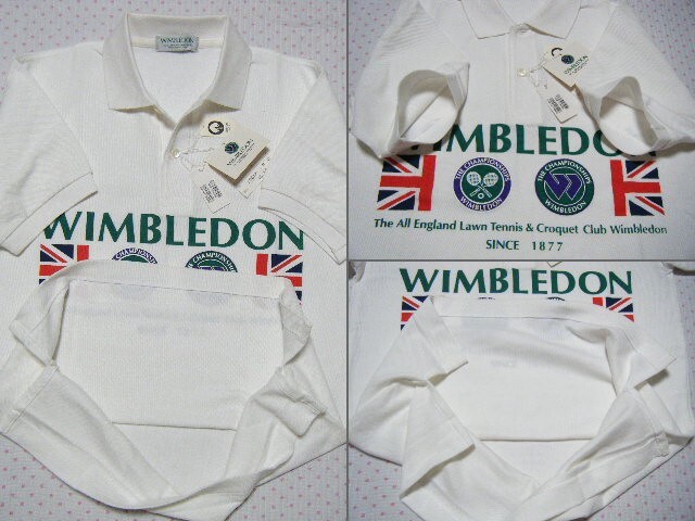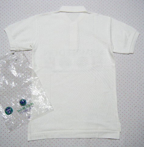 レナウン RENOWN WIMBLEDON テニス用プリントポロシャツ 白色 サイズ M 鹿の子素材 高い通気性/吸水性 定価8,900円 @1980年代製品 收藏