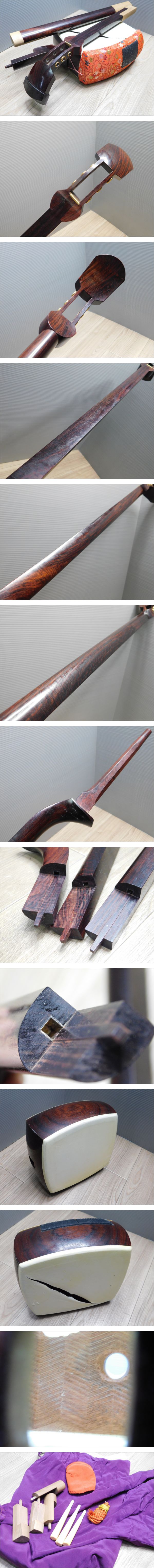 【細棹高級三味線】トチあり 紅木 銀細(銀ホゾ)1本溝(一段溝) 子持ち綾杉胴 長唄 小唄/M394 收藏