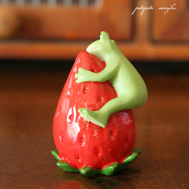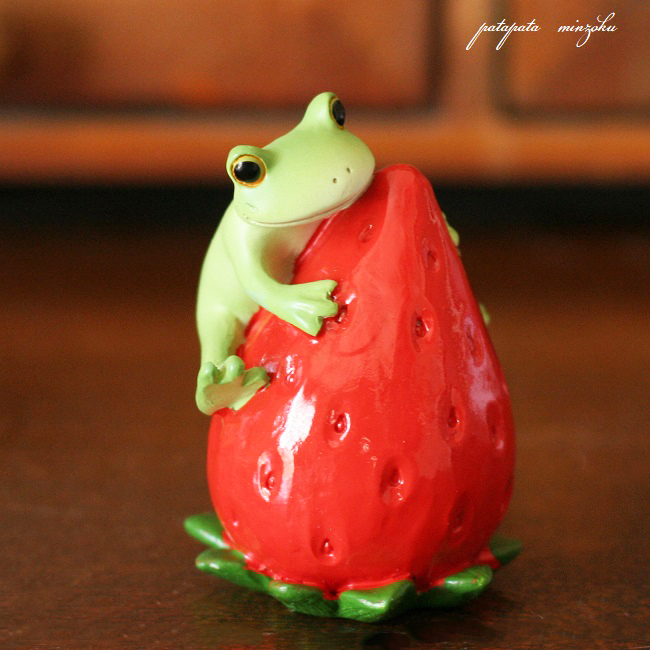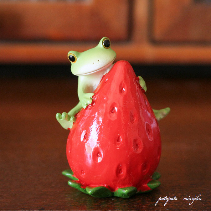 Copeau コポー いちごをひとりじめするカエル 置物 ダイカイ オブジェ カエル イチゴ パタミン 雑貨 苺 いちご 收藏