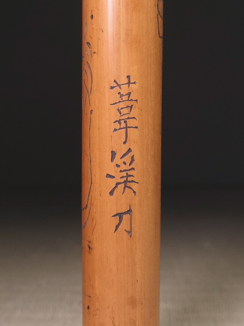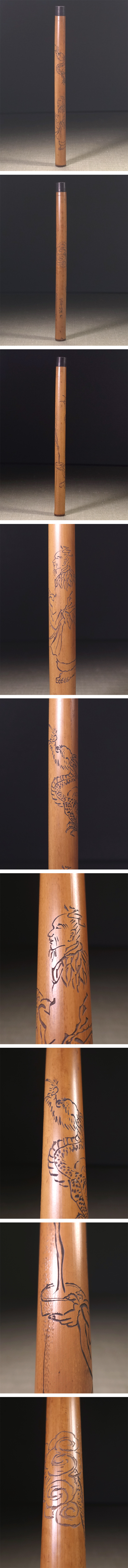 ∇花∇葦渓刀款 古竹彫龍仙人図香筒 時代香道具 收藏