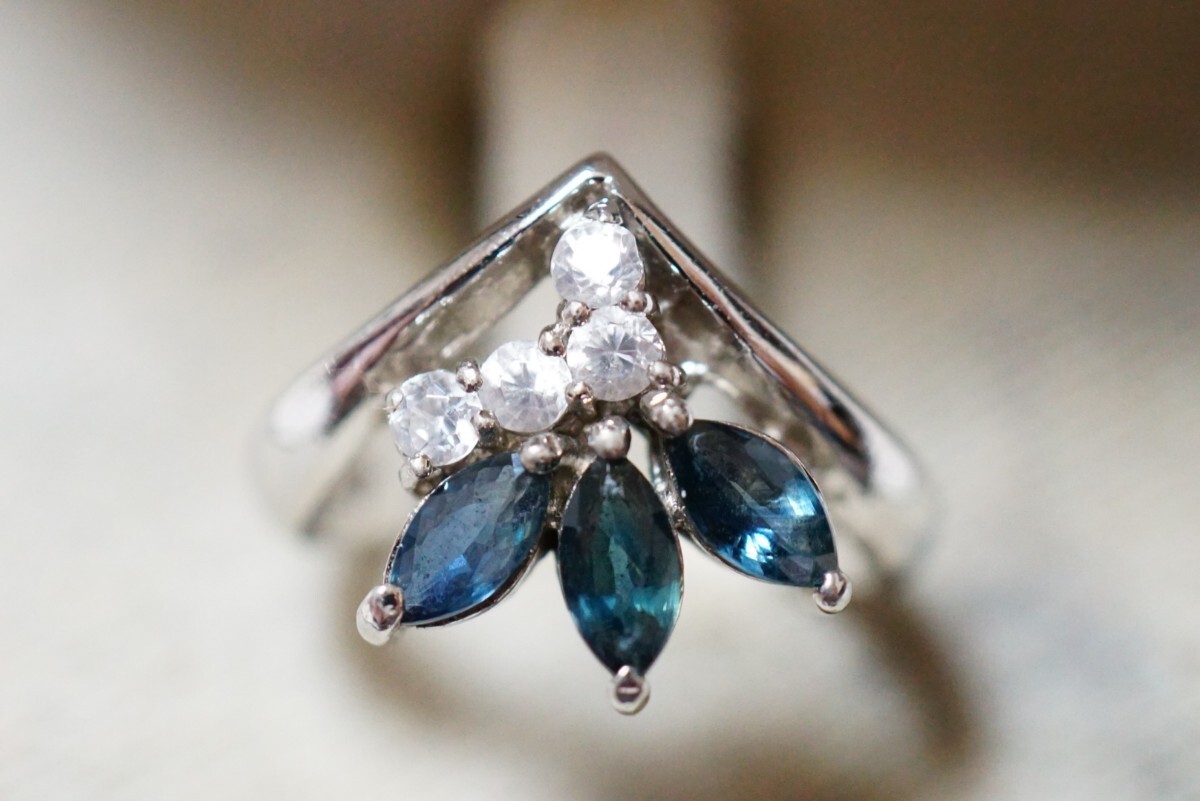 1485 AVON 天然サファイア リング 指輪 ヴィンテージ アクセサリー SILVER刻印 天然石 色石 宝石 カラーストーン 装飾品 收藏