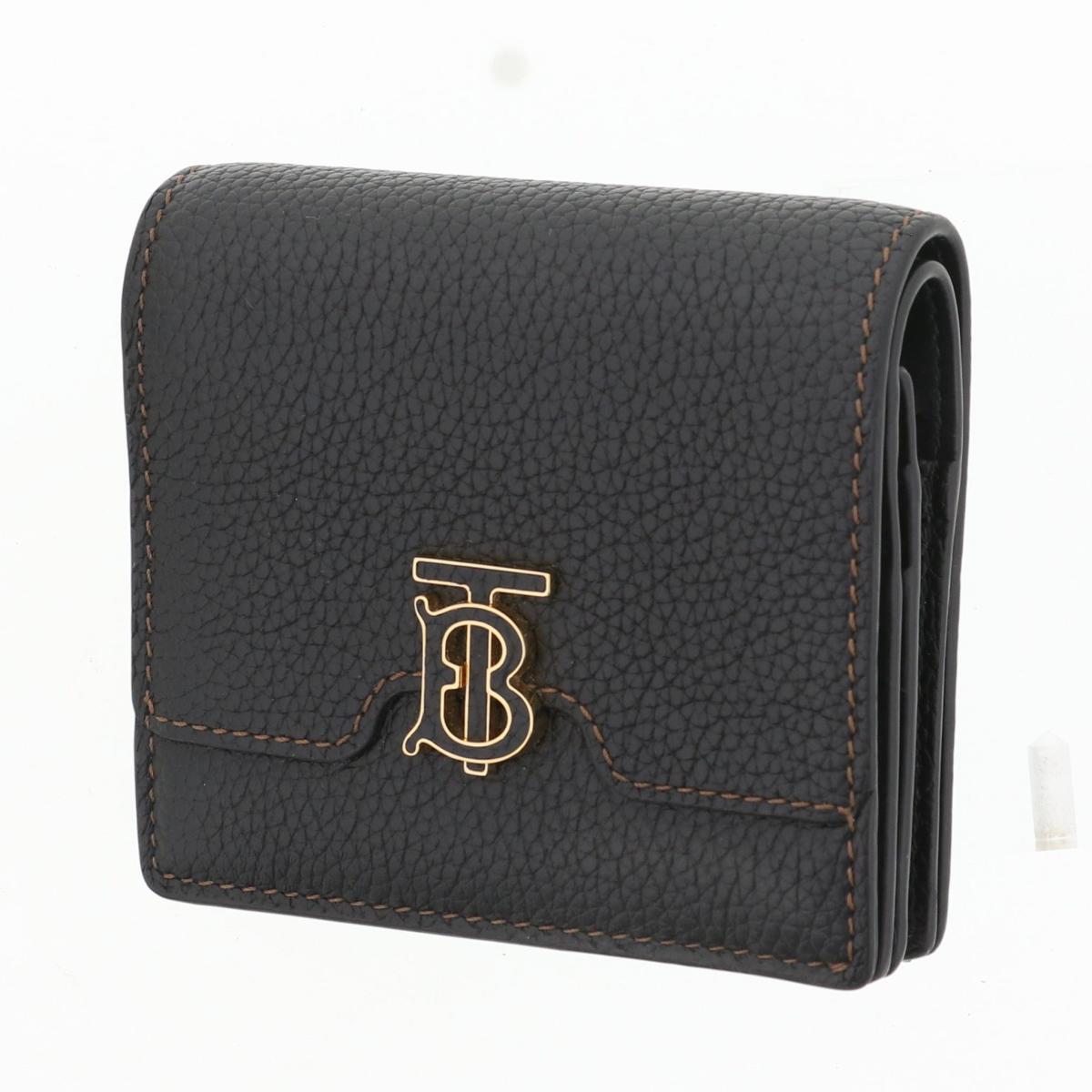 【美品】BURBERRY バーバリー 財布 二つ折り財布(小銭入有) 8062347 Black レザー フォールティングコンパクトウォレット 【中古】 收藏