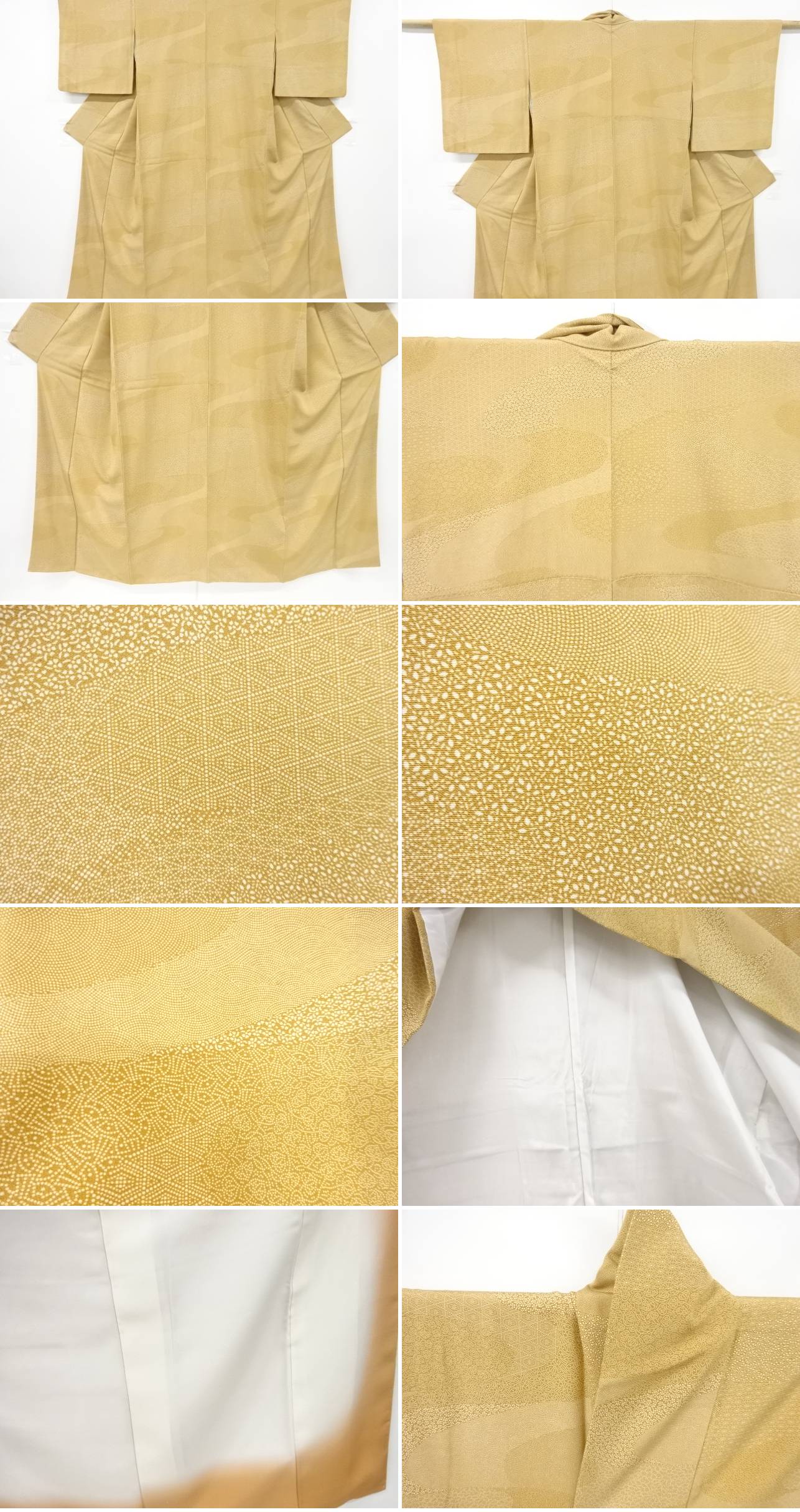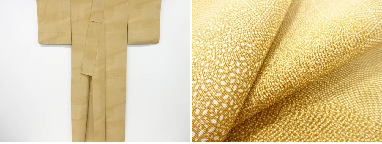 衿は広衿です。 左前身頃裾寄りに薄点アクがあります。 状態は大変良いです。 着用可能です。 採寸:検品:北河・あかほし 撮影:北河 素材は正絹です。 地色はベージュです。 お支払い方法、送料・手数料はストア情報よりご確認お願いいたします。 全国一律1300円。11000円以上で送料無料 ※8/12より送料が変更されています。ご理解の上ご入札ください。 複数ご落札の場合で個別に発送住所がそれぞれ異なる場合は、お手数ですが、別途メールでご連絡下さい。 以前と発送先が異なる場合、別途メールでご連絡下さい。 多少の時代シミ、くすみがある場合があります。 デジタルカメラやモニターの特性により色が忠実に再現できない場合があります。 ご理解頂いた上でのご入札お待ちしております。 ご返品もお受け致しますが、送料、振り込み手数料は、お客様負担でお願いします。 |