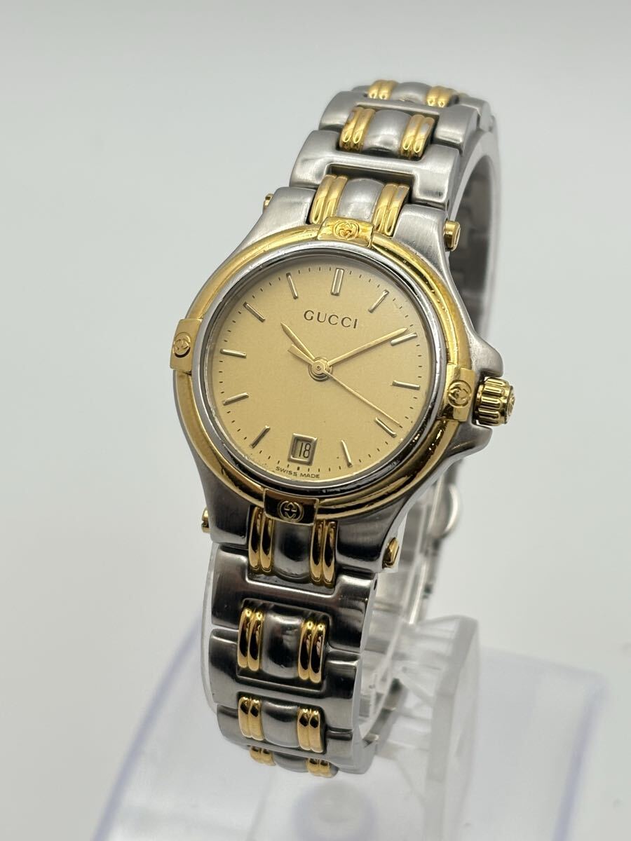 【1円スタート】GUCCI グッチ 9040L ゴールド文字盤 アイボリー文字盤 QZ デイト クォーツ 腕時計 稼働品 收藏