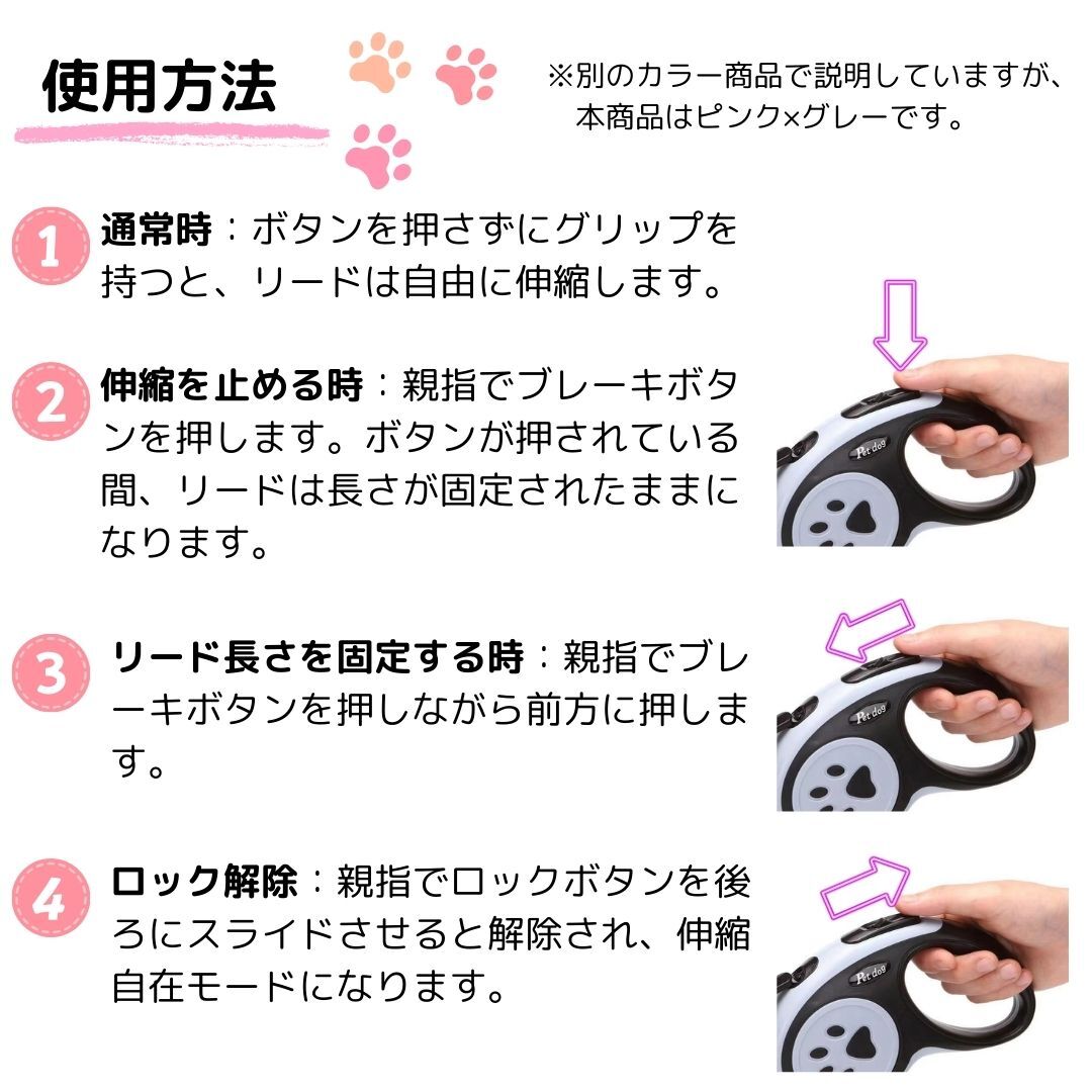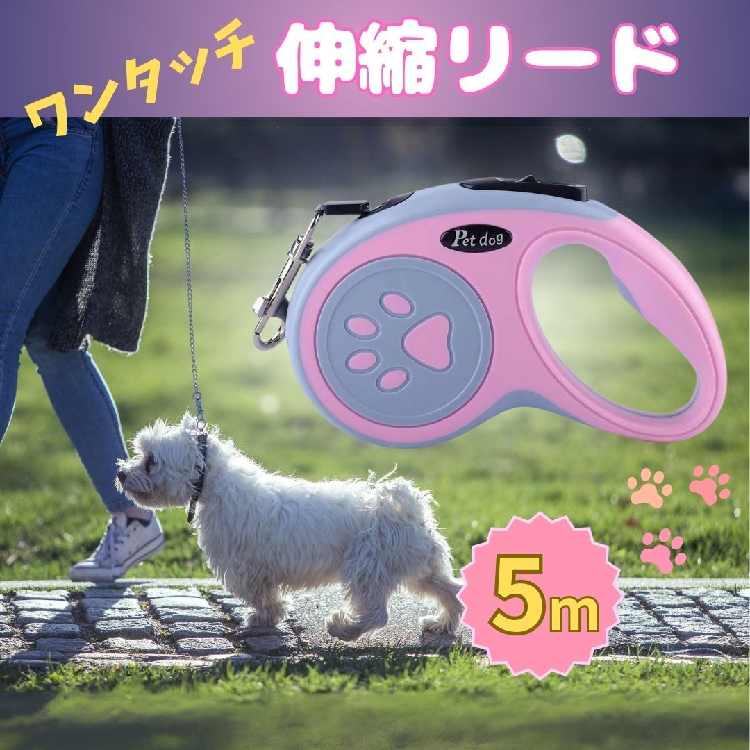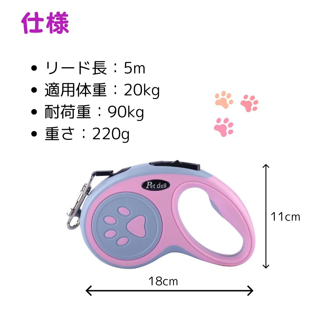 【残1個】5m 犬用リード 自動伸縮 巻き取り式 伸縮リード 犬 散歩 ペット用品 首輪 巻取り ペット ピンク グレー リード ロープ ひも 愛犬 收藏
