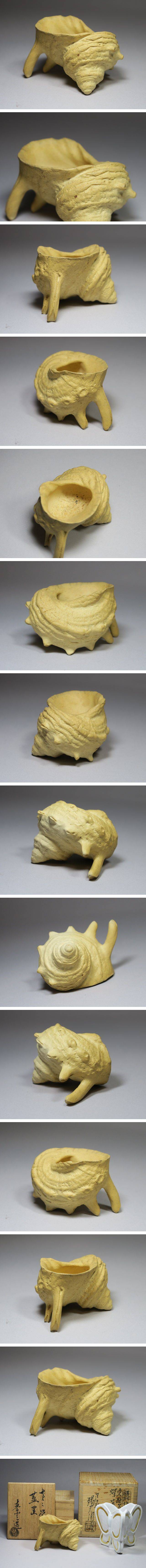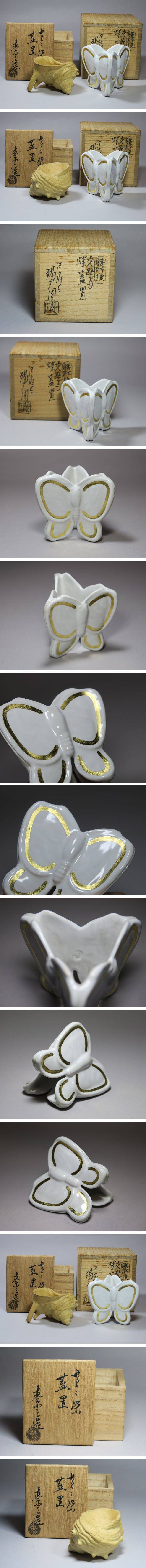 ◆膳所焼 淡海ぜぜ 陽炎園造 交趾写蝶蓋置 常滑焼 名工 不織庵 井上素三造 栄螺蓋置 二種 共箱 茶道具 收藏