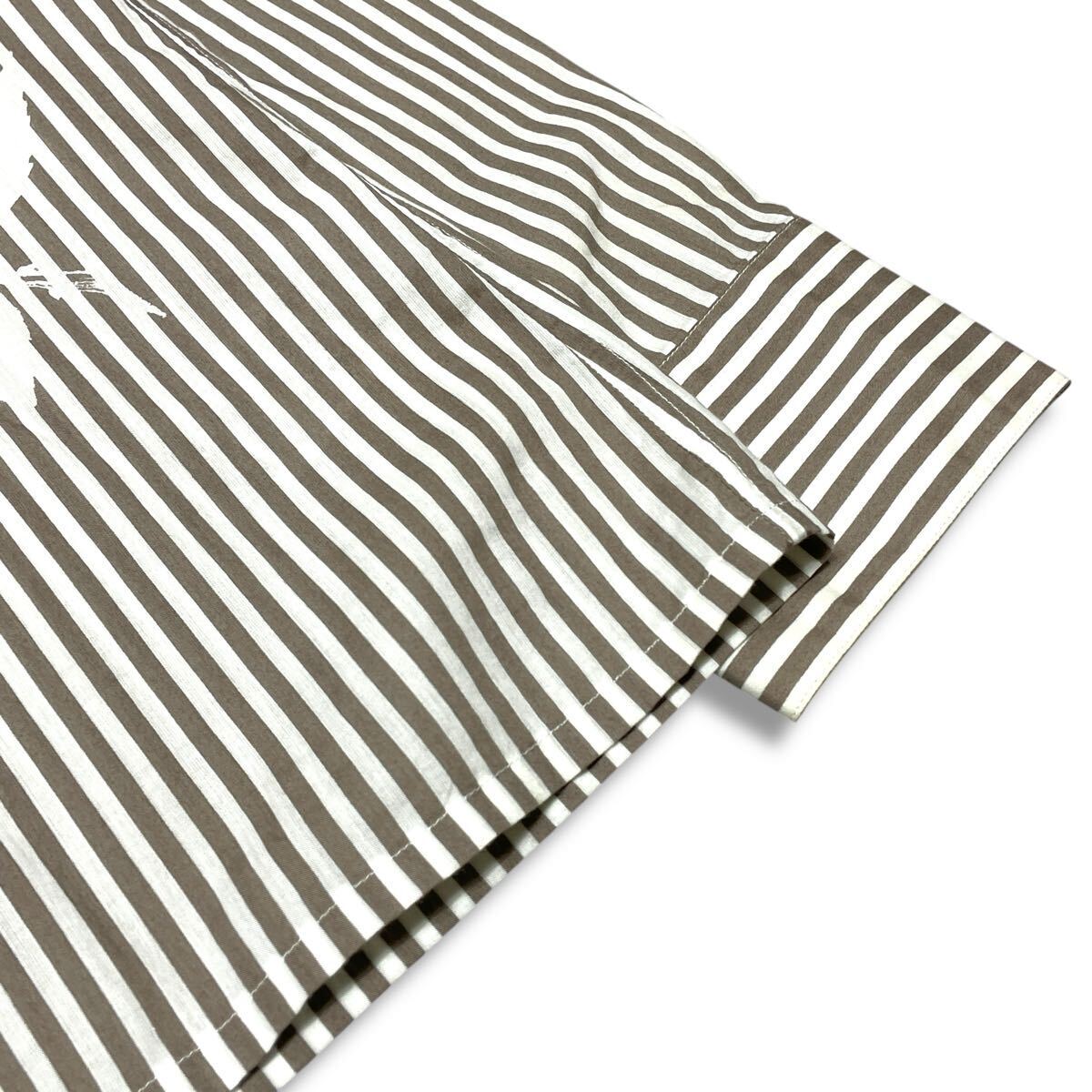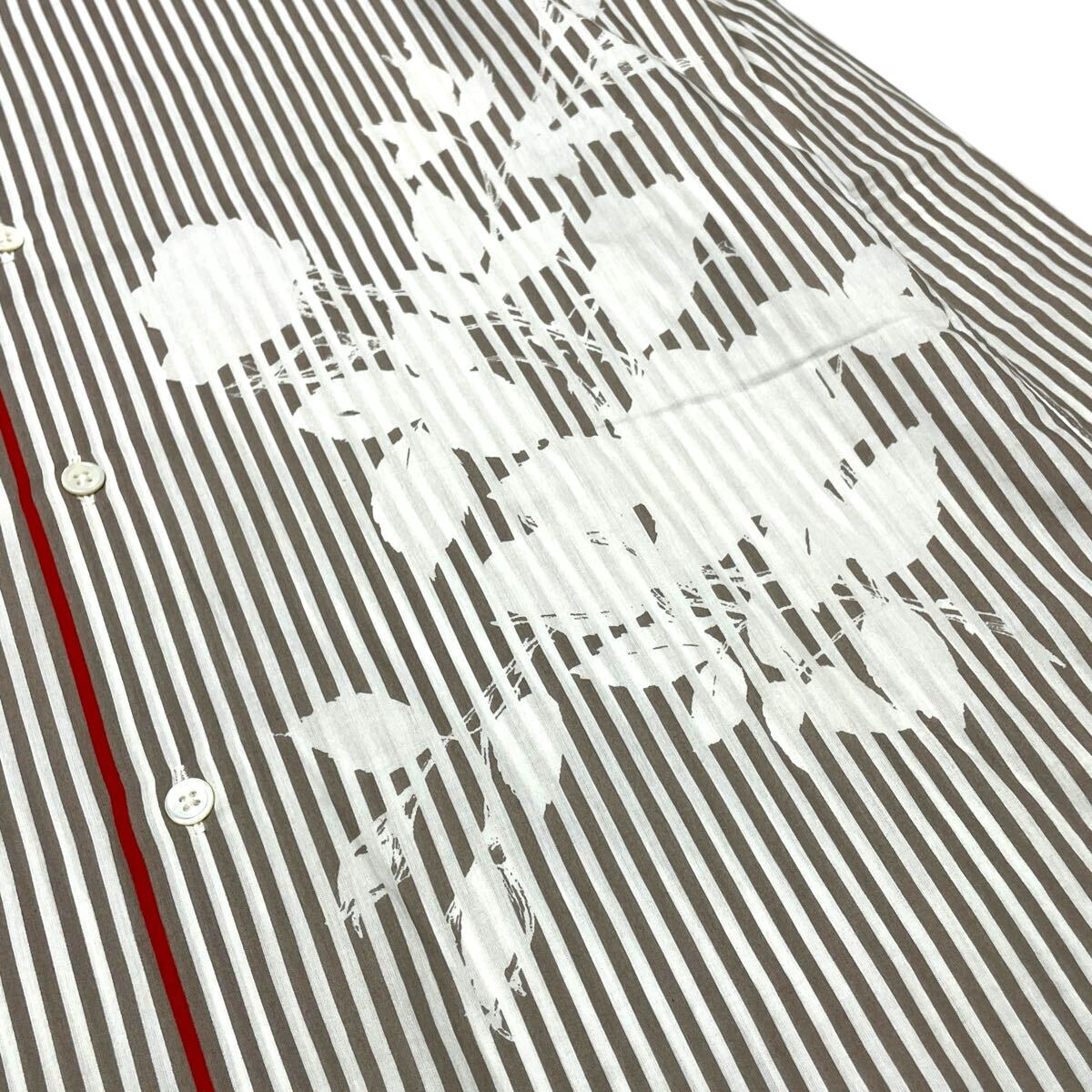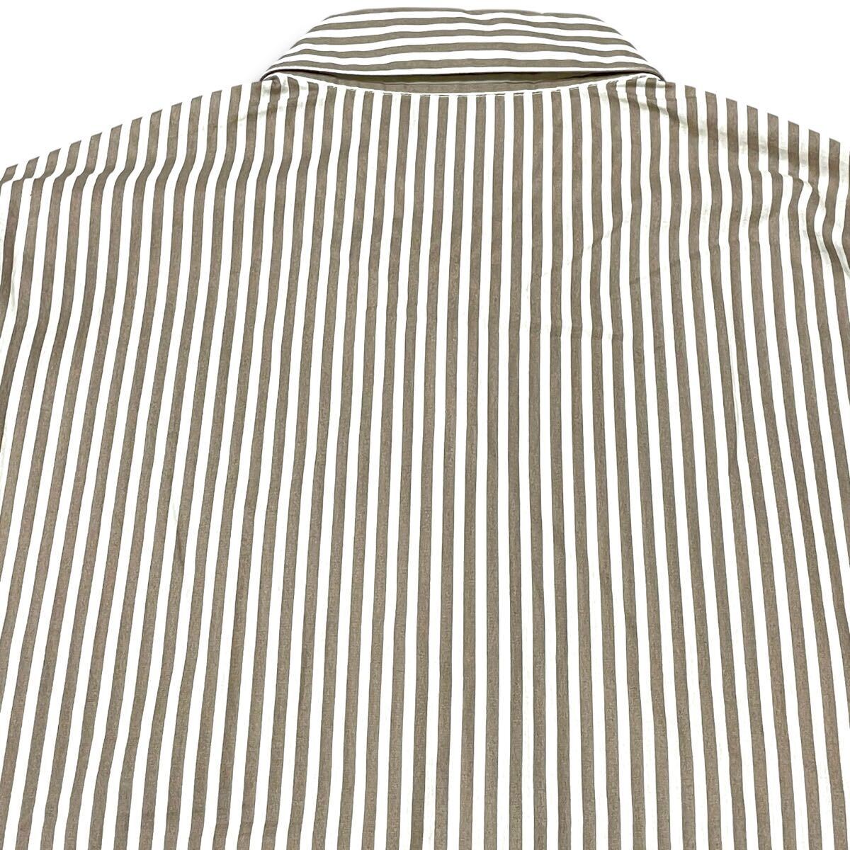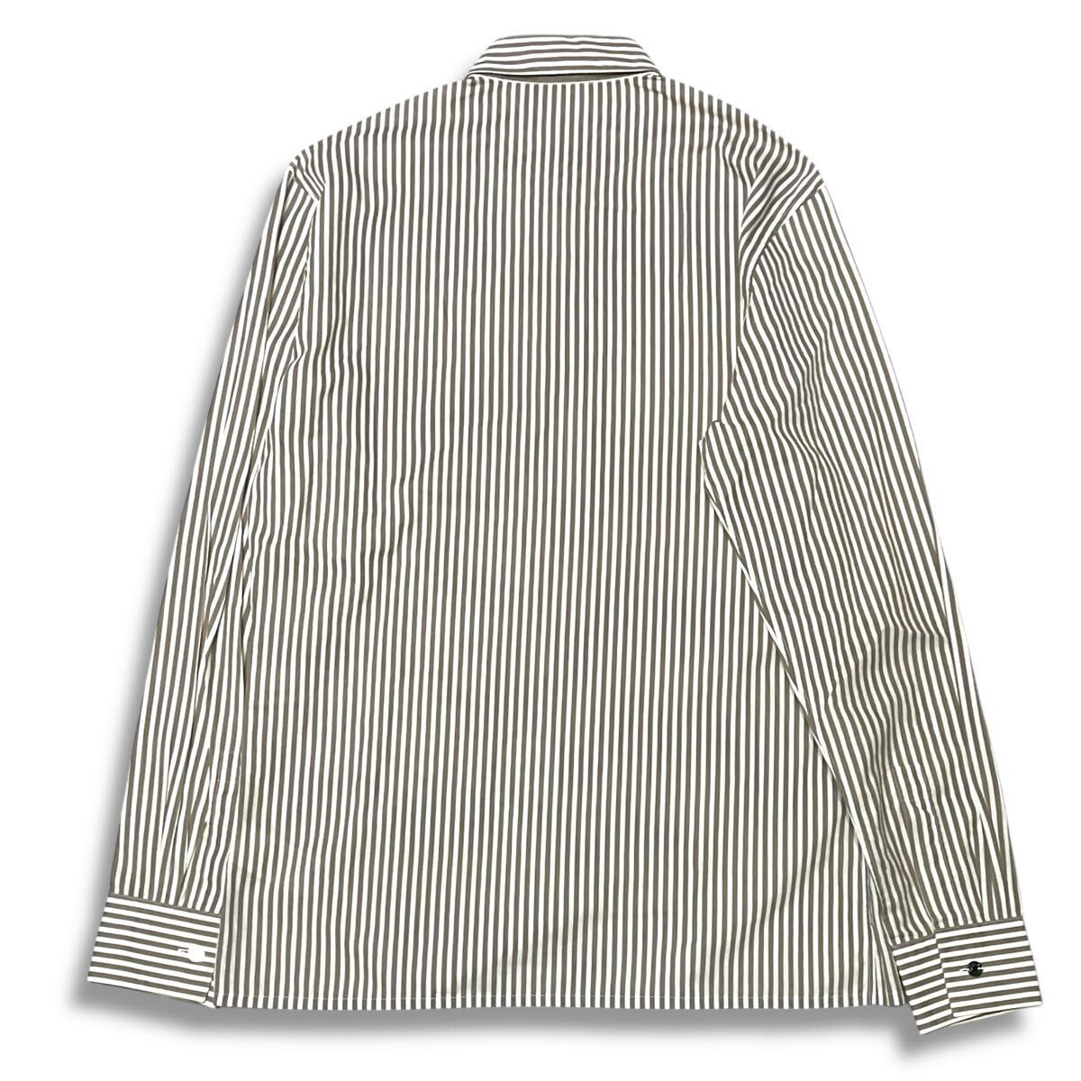 9 国内正規品 HERMES エルメス ストライプ 長袖コットン フラワー ロゴ ドレスシャツ 39 グレー系 セリエ ロゴボタン メンズ フランス製 收藏