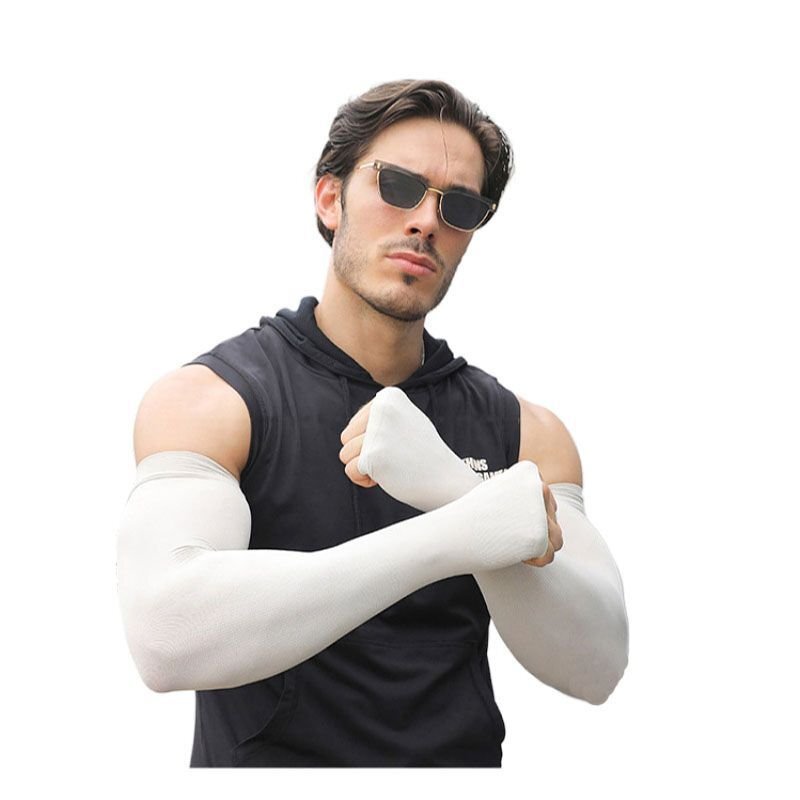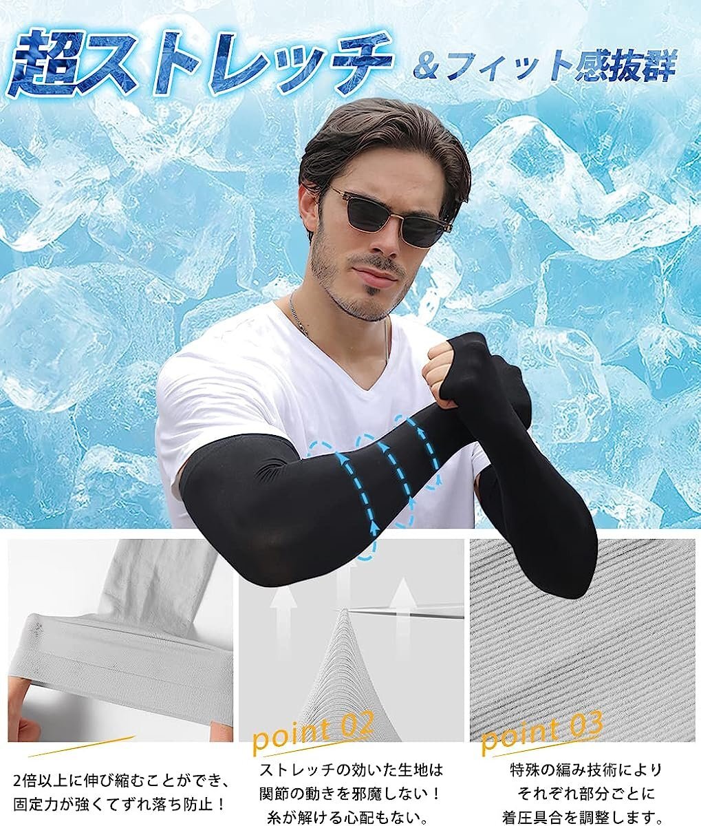 アームカバー UVカット 大きいサイズ 接触冷感 メンズ ロング スポーツ 日焼け対策 アウトドア 涼しい 運転 クール【指穴ありグレー】 收藏