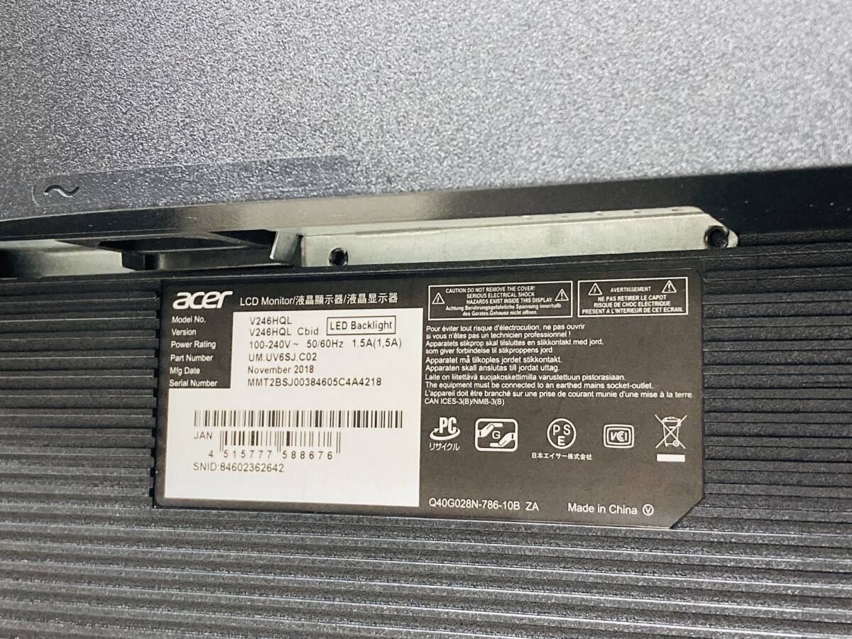 全国送料無料 動作補償 ACER 23.6型 ワイド モニター フルHD 1920×1080 TN パネル非光沢 V246HQLCbid 收藏