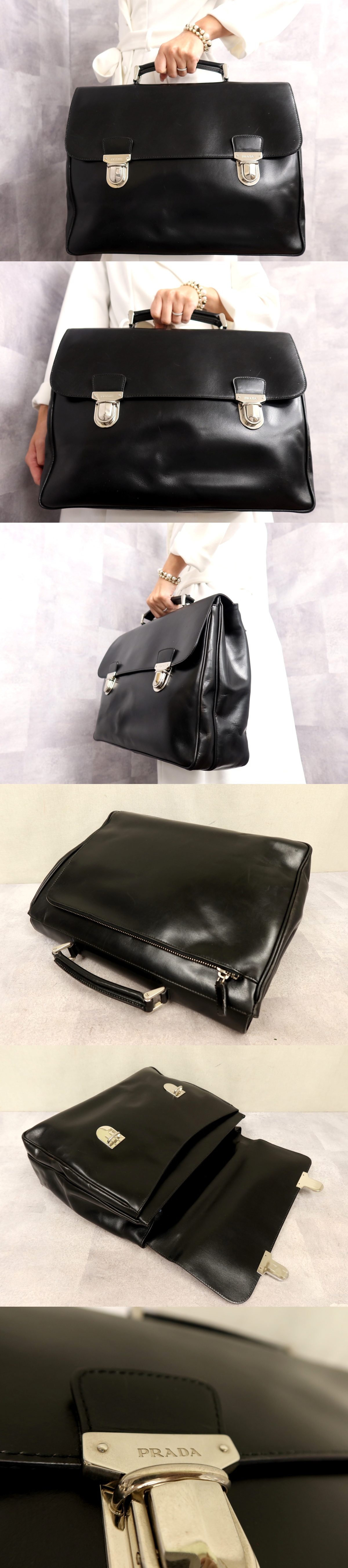 ●超美品●PRADA プラダ●メンズ●カーフ レザー 本革●ハンド ビジネス バッグ●黒●シルバー金具●イタリア製●A4 書類 かばん●Js62002 收藏